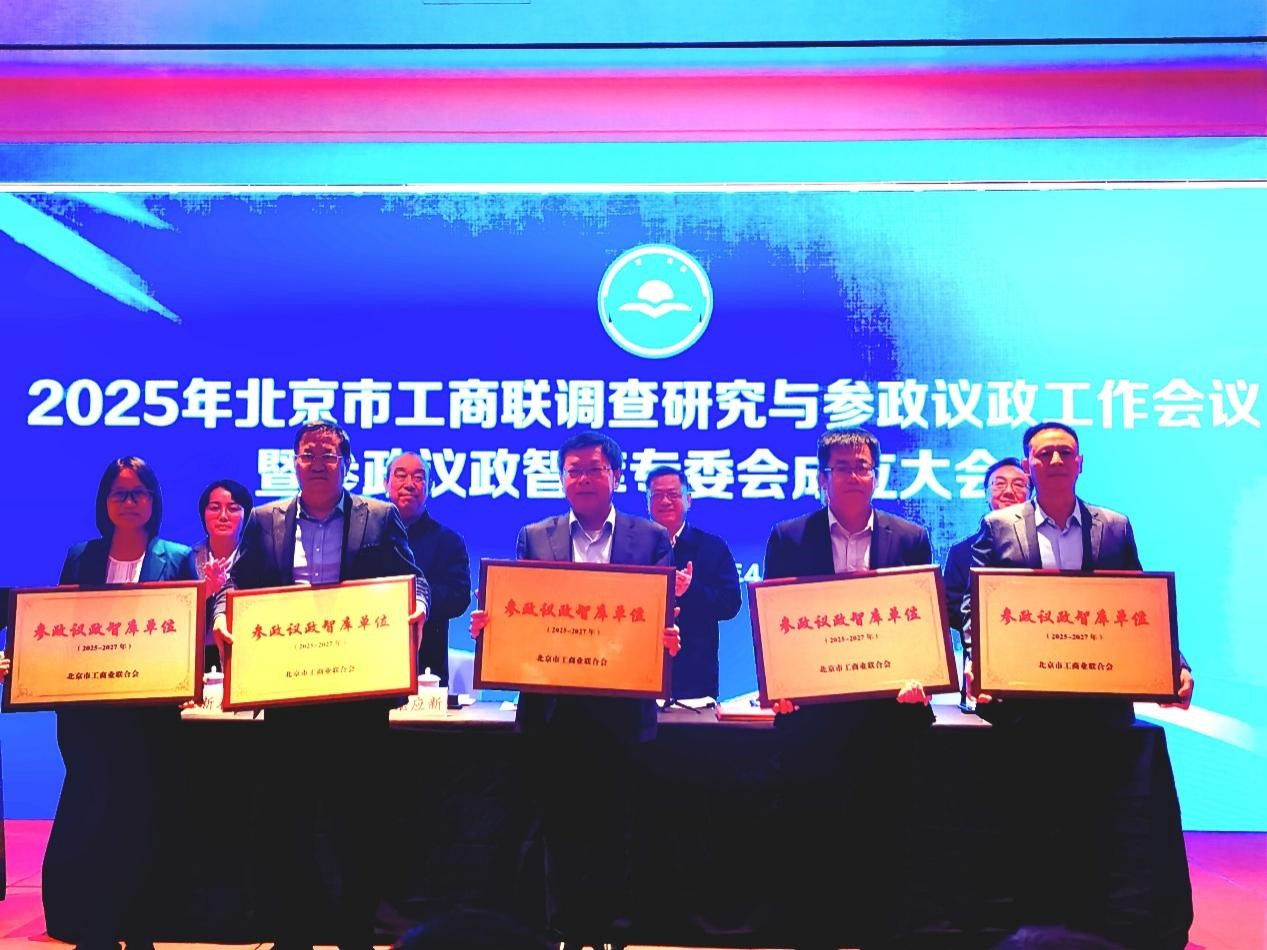 4月27日,北京市工商联2025年调查研究与参政议政工作会议暨参政议政智库专委会成立大会在通州副中心隆重举行。会议对2024年市工商联参政议政工作进行了总结,对先进单位和个人进行了表彰,同时新增买球体育等5家单位为“北京市工商联参政议政智库单位”,买球体育官方网站副院长蒋贵凰代表学校接牌。