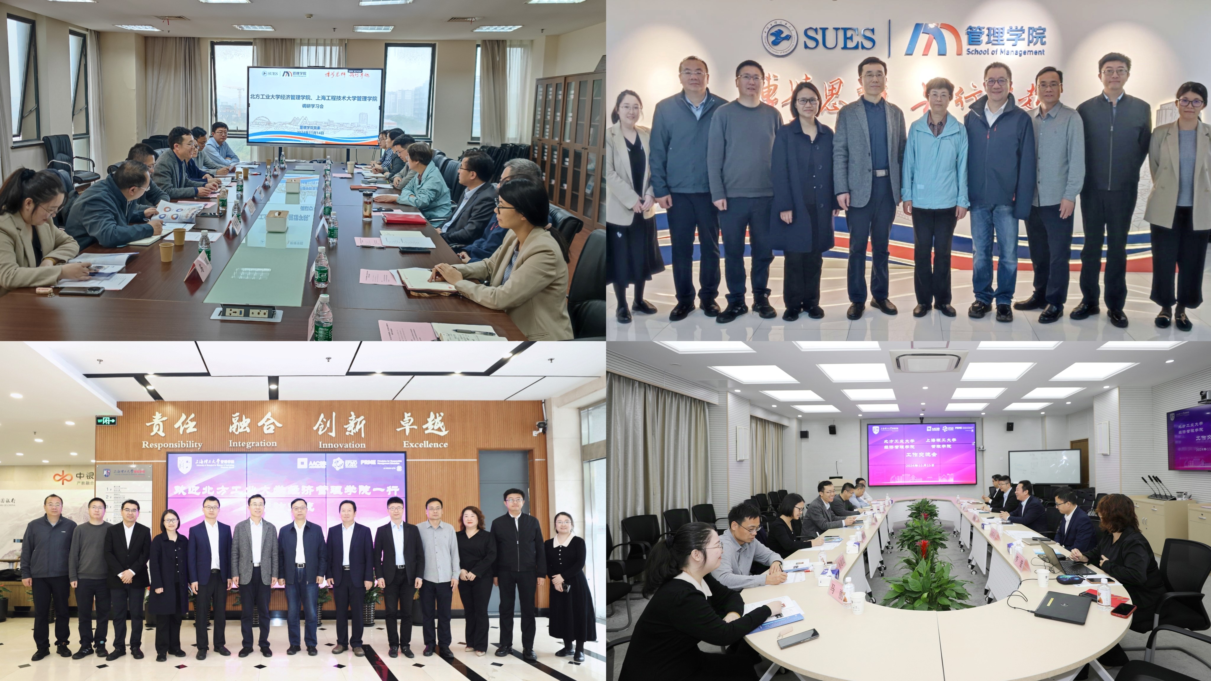 为深入学习贯彻党的二十大精神,推进学习贯彻党的二十届三中全会精神和全国教育大会精神走深走实,深化学校之间的交流,学习借鉴外校的先进经验,进一步促进党建引领事业发展,11月14日-15日,学院党委书记谢朝阳带队一行7人,到上海理工大学管理学院、上海工程技术大学管理学院、嘉兴大学商学院调研交流,并与嘉兴大学商学院签订共建协议。