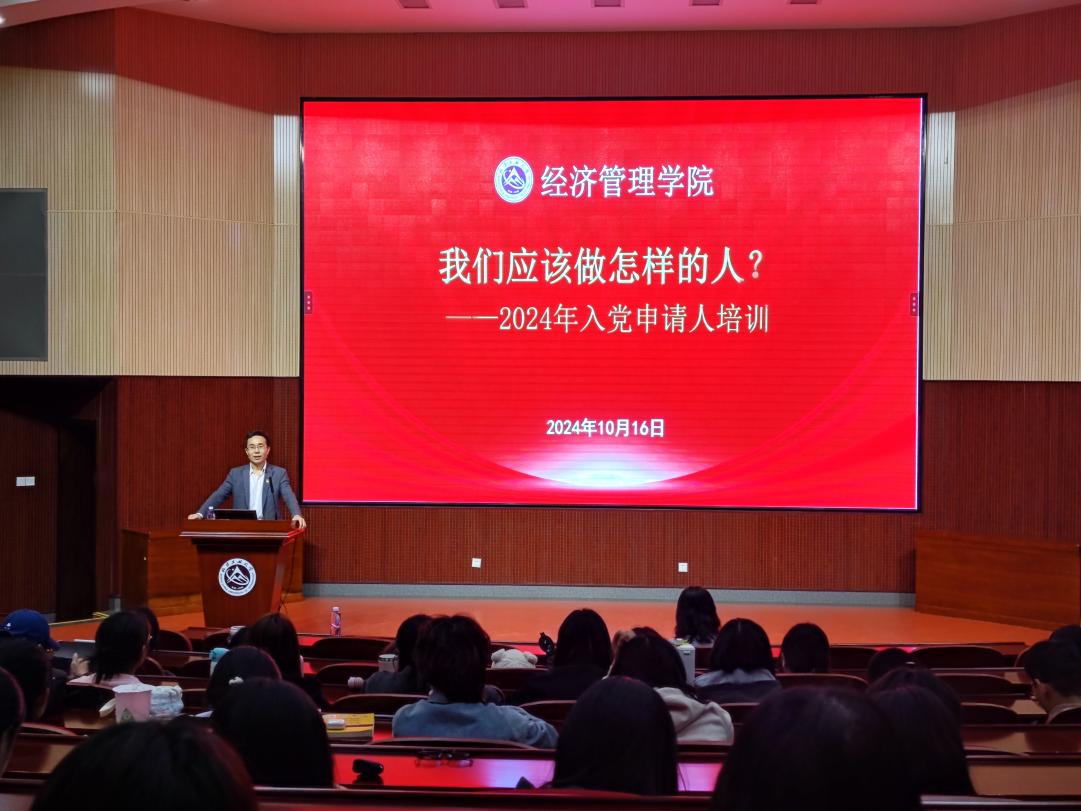 为深入学习贯彻党的二十届三中全会精神,从源头保证发展党员质量、将党员教育管理做细做实,10月16日,买球体育官方网站党委书记谢朝阳通过讲党课的形式为2024年入党申请人进行培训。学院党委副书记王帏主持会议。