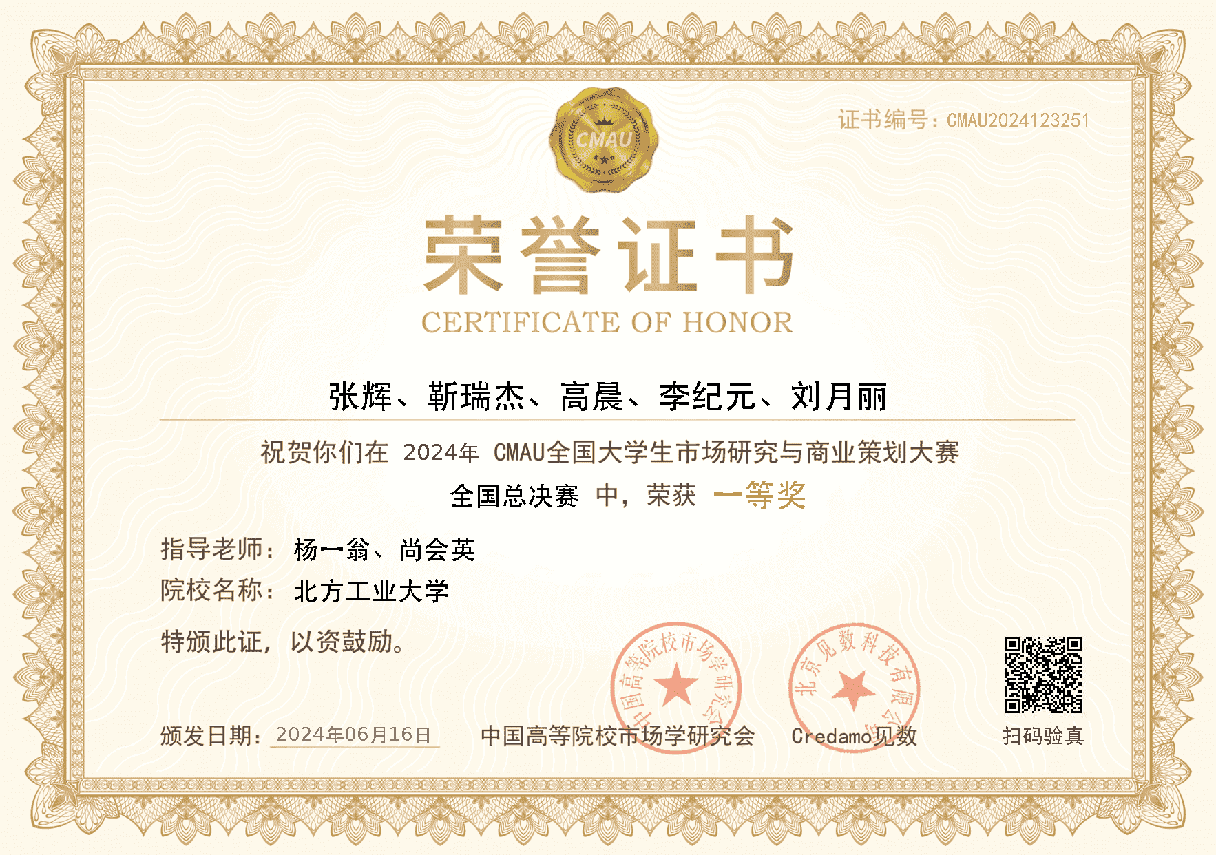 6月16日,由中国高等院校市场学研究会(CMAU)主办的第三届CMAU全国大学生市场研究与商业策划大赛,在中南财经政法大学圆满落下帷幕。由买球体育买球体育官方网站杨一翁老师、尚会英老师指导的,由工商管理系研究生张辉、靳瑞杰、高晨、李纪元、刘月丽组建的参赛队伍荣获全国总决赛一等奖,杨一翁老师、尚会英老师被评为优秀指导教师。