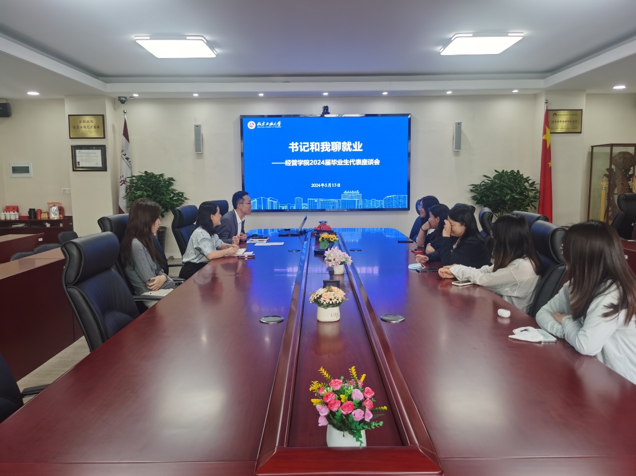 5月13日下午,买球体育官方网站在励学楼201会议室召开“书记和我聊就业”——毕业生代表就业座谈会。本次座谈会旨在帮助未就业国助毕业生更好地了解当前就业市场形势,同时结合实际,为同学们提供有针对性的就业指导。学院党委书记谢朝阳,党委副书记王帏,辅导员张泽圣以及部分毕业生参加活动。