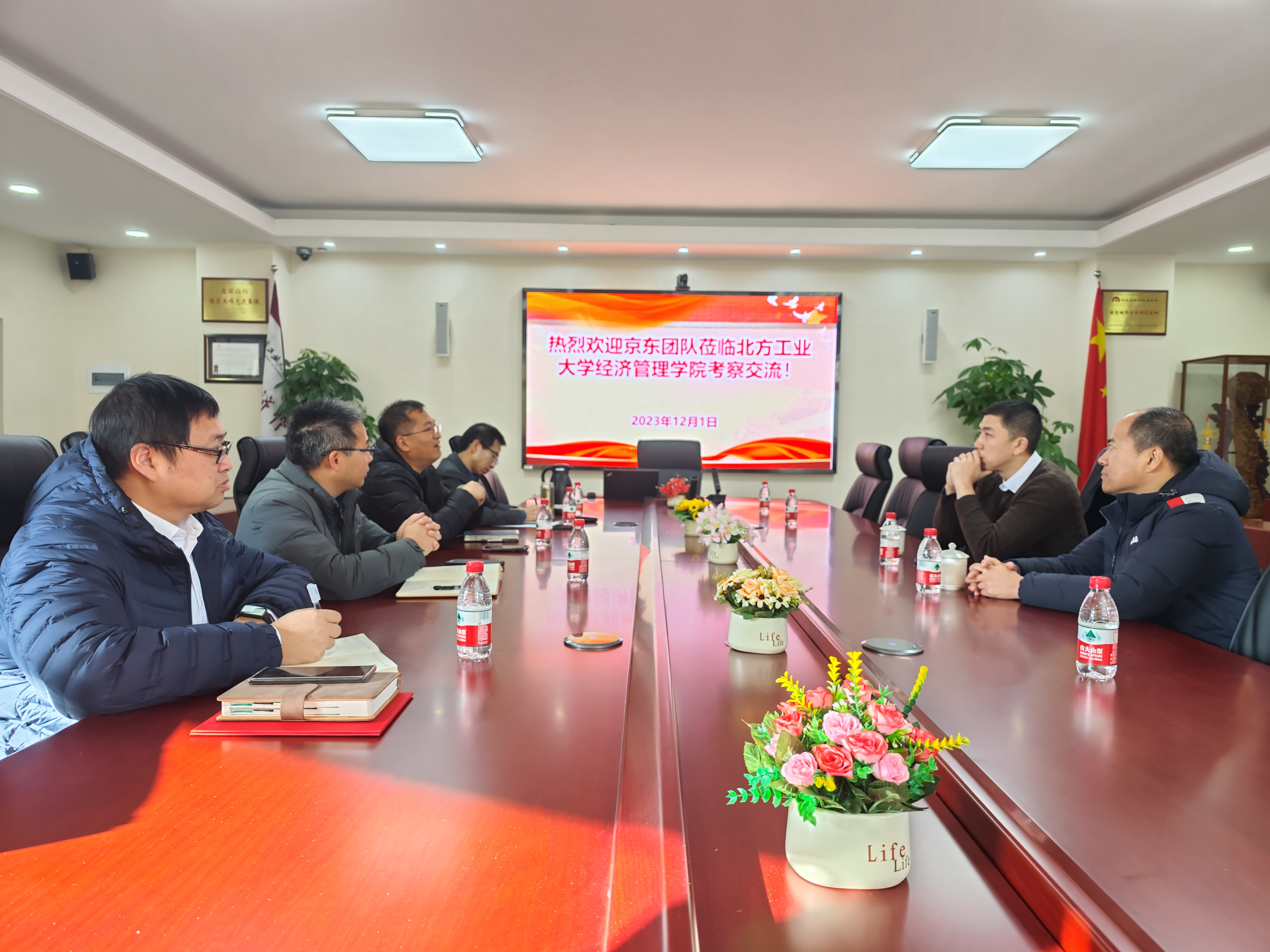 12月1日上午,买球体育官方网站与京东集团专家在励学楼201会议室就产学协同与产教融合进行交流,会议由副院长孙强主持,管理系主任郑强国、经济系主任王书平、实验中心主任牛天勇参加了交流。