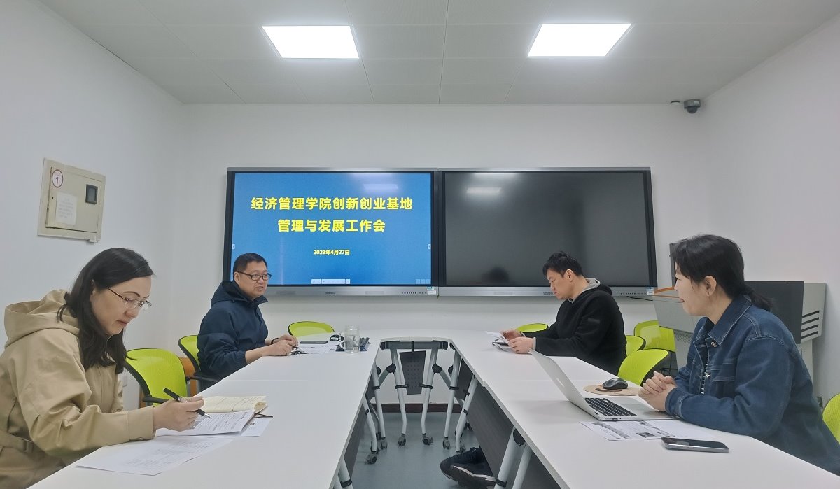 2023年4月27日,经济管理实验中心召开创新创业基地管理与发展工作会,就目前创新创业基地的建设、发展和管理问题展开研讨。实验中心牛天勇、刘冰、景跃和郝红英老师参会。