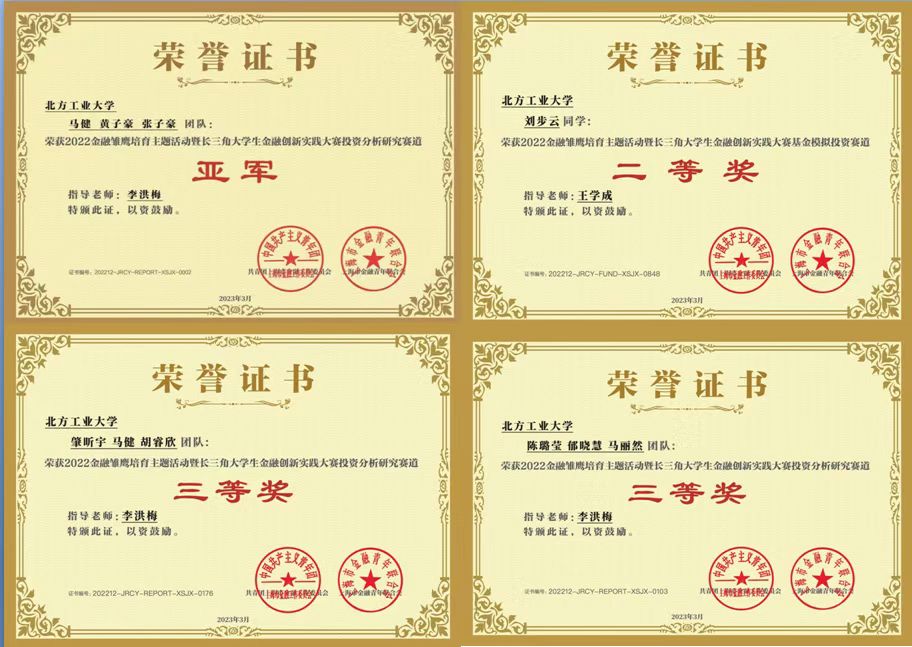 在2023年4月份刚结束的答辩环节中,买球体育由马健、陈子豪、黄子豪组成的金融秃鹰代表队,在经济系李洪梅、王学成、张蜀林、王莉娜四位老师指导下,不畏强敌,奋勇拼搏,最后获得了全国亚军,并获取大赛奖金1.2万元人民币,学生充分展现了出色的专业素养和专业技能,以及较强的金融创新实践能力。