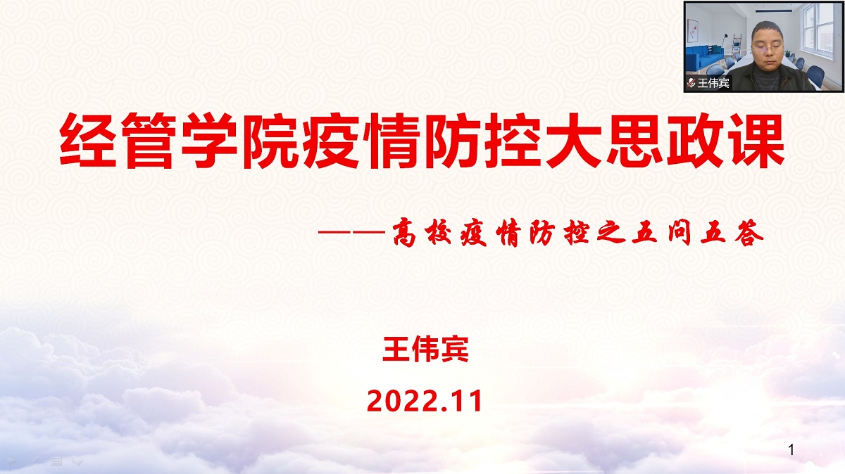 为进一步落实主体责任,重点加强风险管理,坚决守护校园安全,11月30日,买球体育官方网站党委书记王伟宾通过线上的方式对班子成员、系主任、支部书记开展了“高校疫情防控之五问五答”专题大思政课。