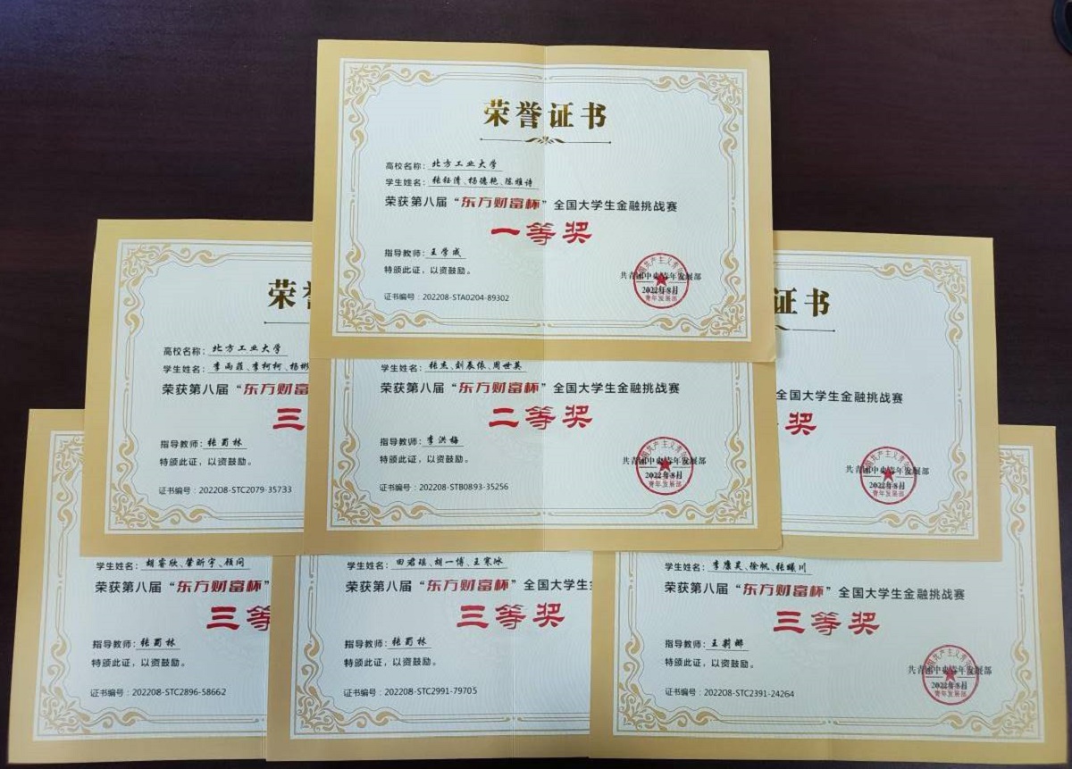 近日,由共青团中央青年发展部主办,东方财富信息股份有限公司、全国学校共青团研究中心承办的第八届“东方财富杯”全国大学生金融精英挑战赛圆满结束。买球体育共获得全国一等奖1项,二等奖1项,三等奖5项的好成绩,其中历史性首次获得全国一等奖。参赛学生由买球体育官方网站教师张蜀林、王学成、王莉娜、李洪梅等指导。