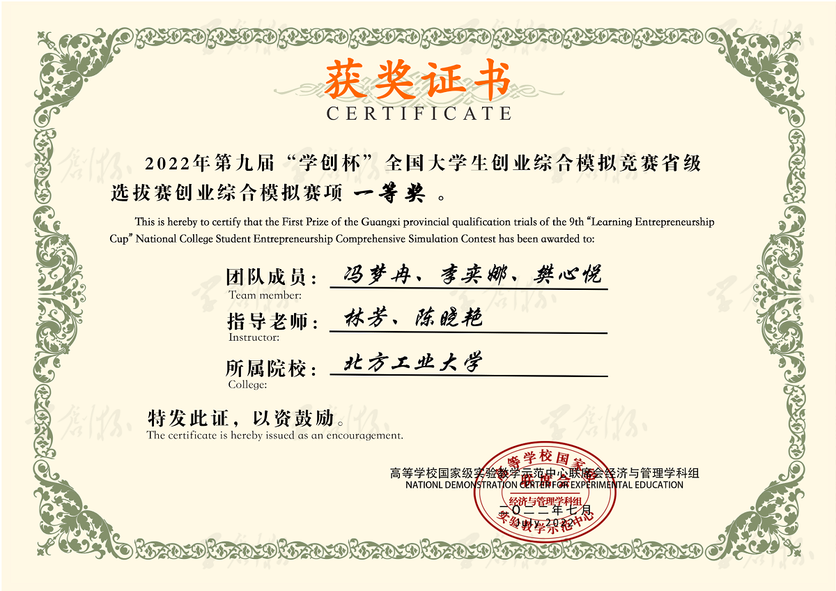日前,由高等学校国家级实验教学示范中心联席会经济与管理学科组和中国陶行知研究会联合举办的第九届“学创杯”全国大学生创业综合模拟大赛北京市赛圆满落幕,本次比赛吸引全国近二十万大学生和两千多名相关教师积极参与。比赛分为校内选拔赛和北京市赛两个环节,包括创业综合模拟竞赛和创业营销专项竞赛两个赛道,其中北京市赛共有106支团队参与。