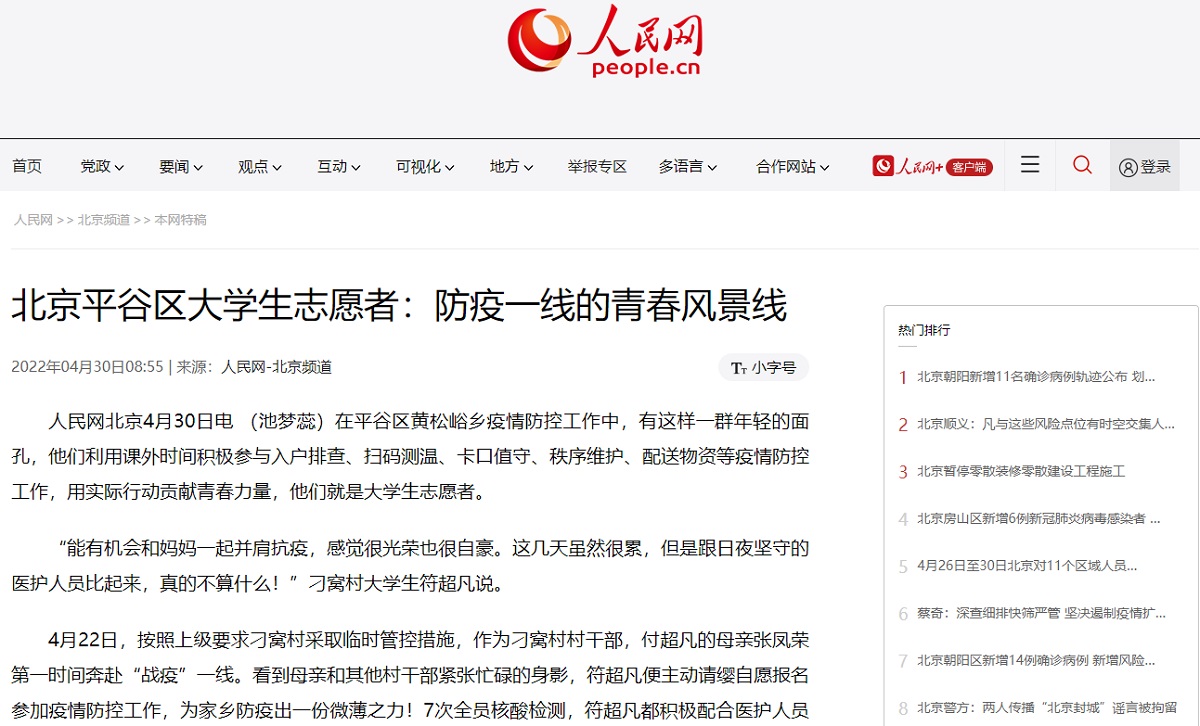 2022年全国和北京疫情防控形势严峻复杂,买球体育官方网站学生积极响应国家和学校号召,主动担当作为,投身所在社区、乡镇或街道的志愿服务工作,涌现出一批积极参与疫情防控志愿服务的“红马甲”和“大白”。他们用青春镌刻责任与担当,用坚持、坚守、坚定守护人民健康,展示了北方工大学子的责任与担当,抗疫事迹被人民网、北京日报等媒体报道。