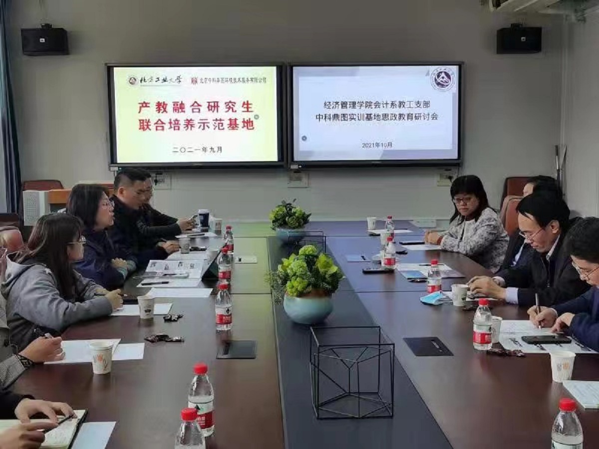 为了将“我为群众办实事”落到实处,围绕一流专业建设,更好的将课程思政与实践教学内容相融合,提升实践类课程的思政教学效果,10月25日,会计系教工支部与会计系实践教学基地——中科鼎图实训基地联合召开了实践课程思政教育研讨会。中科鼎图实训基地围绕环境会计与管理方向,近三年来已培养了多名研究生与本科生,积累了一定的教学成果。