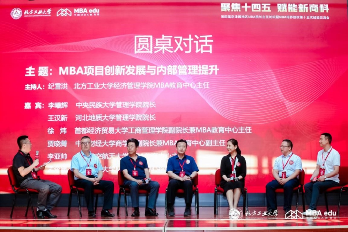 时代的发展在不断变化,对于人才的需求也提出了新的要求。针对商学院建设与人才培养,商学院一直在做积极探索与实践。在圆桌对话环节,中央民族大学管理学院院长李曦辉、河北地质大学管理学院院长王汉新、中央财经大学商学院副院长兼MBA中心副主任贾晓菁、首都经济贸易大学工商管理学院副院长兼MBA中心主任徐炜、北京航空航天大学MBA教育中心主任李亚帅、中国政法大学MBA教育中心招生部主任孟令星作为发言嘉宾围绕《MBA项目创新发展与内部管理提升》主题展开交流与讨论。圆桌对话由买球体育官方网站MBA教育中心主任纪雪洪主持。