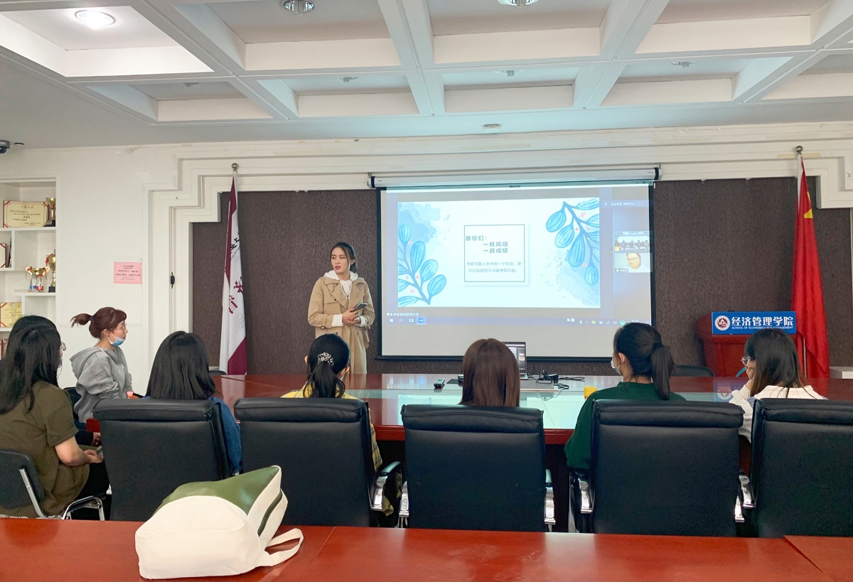 2021年4月29日下午3点,买球体育官方网站励学论坛在励学楼301会议室举行。本期励学论坛由买球体育官方网站会计系教师兼教师辅导员姜晓文老师主持,远程连线2021年拟录取买球体育的会计专硕柴莹莹同学,趁热为学弟学妹们带来了满满干货!本次论坛中,柴莹莹同学首先介绍了个人情况,解答了常见问题,分享了自己的备考计划,最后从心态上给学弟学妹们进行全方位指导,并祝愿学弟学妹们“一帆风顺、一战成硕”。现场氛围活跃,互动良好,结束时大家以热烈掌声向学姐表达了诚挚的谢意。