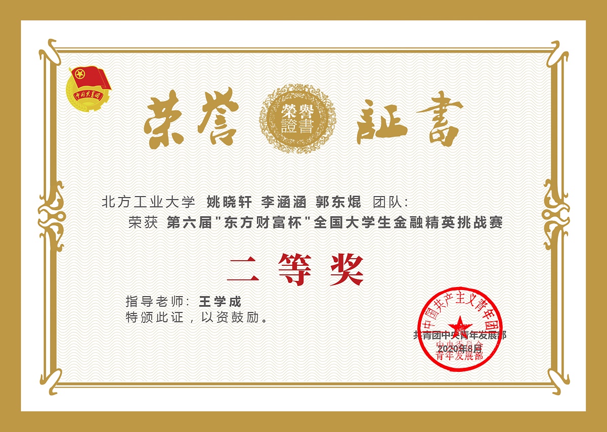 由共青团中央青年发展部主办,东方财富信息股份有限公司、全国学校共青团研究中心承办的第六届“东方财富杯”全国大学生金融精英挑战赛圆满结束。买球体育买球体育官方网站经济系张蜀林老师、王学成老师、王丽娜老师作为指导教师,组织并指导学生参加了本届大赛,最终有3支团队获得全国二等奖,1支团队获得全国三等奖。