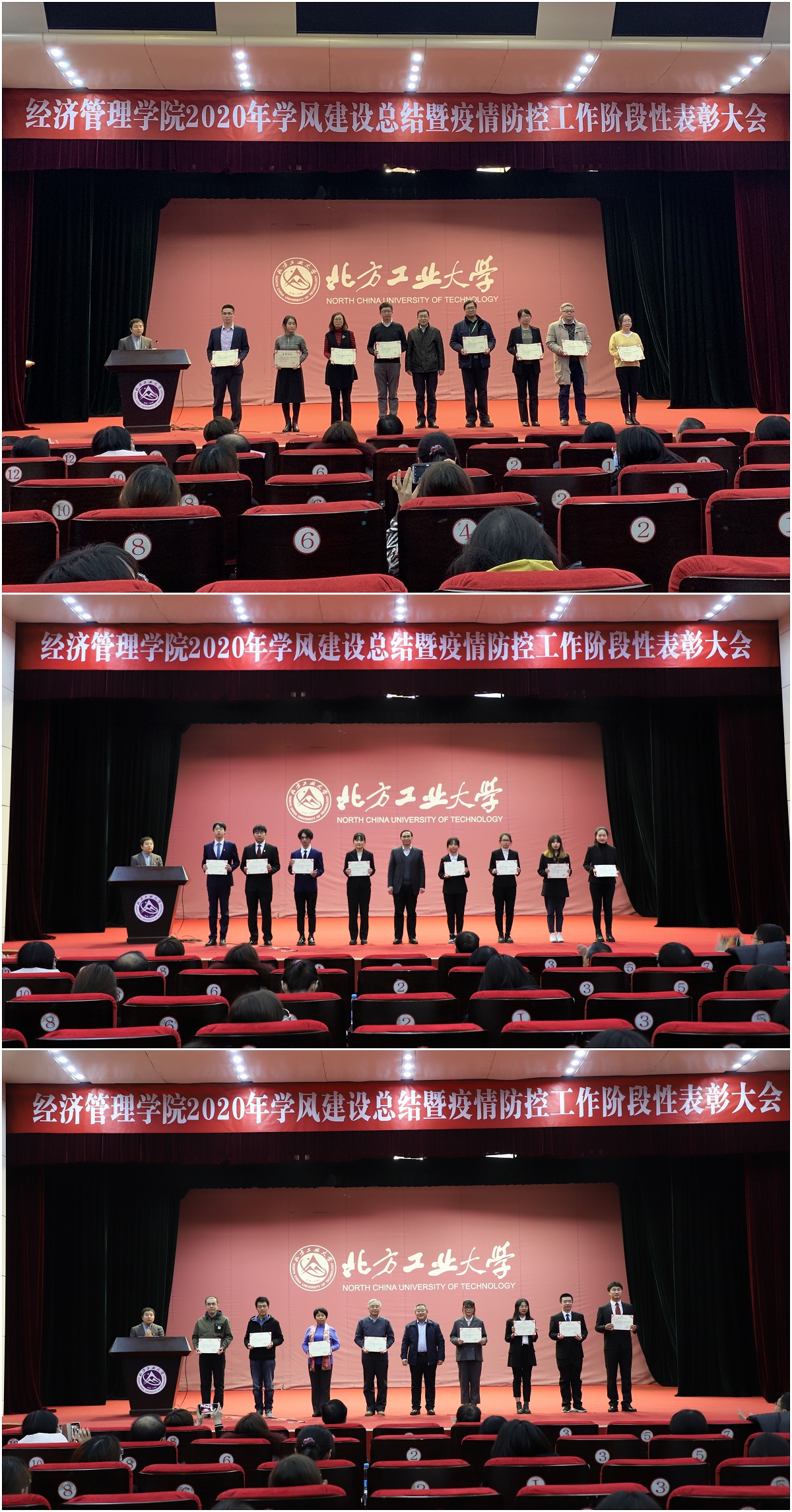 12月10日晚,买球体育官方网站在图书信息楼报告厅举行2020年学风建设总结暨疫情防控工作阶段性表彰大会。教务处处长刘文楷、学生工作部部长高国伟、学院领导班子成员、各系(中心)主任、班导师、辅导员和400余名学生参加了此次大会。大会由学院党委书记王伟宾主持。