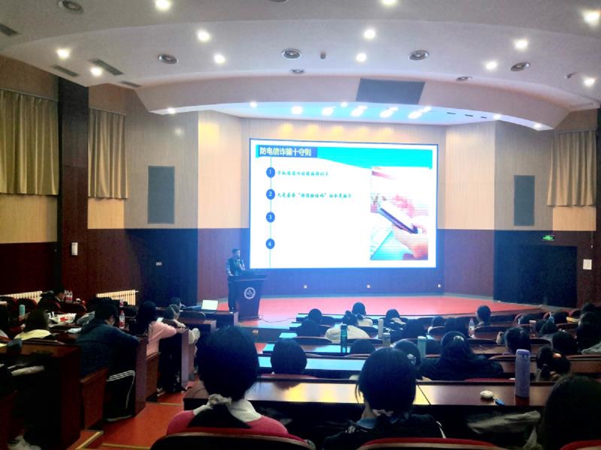 10月26日下午,买球体育官方网站召开“防诈骗”安全教育知识讲座,讲座邀请到安稳处刘有宝老师为同学们讲述“预防电信(网络)诈骗小知识”,20级全体新生参加了讲座。