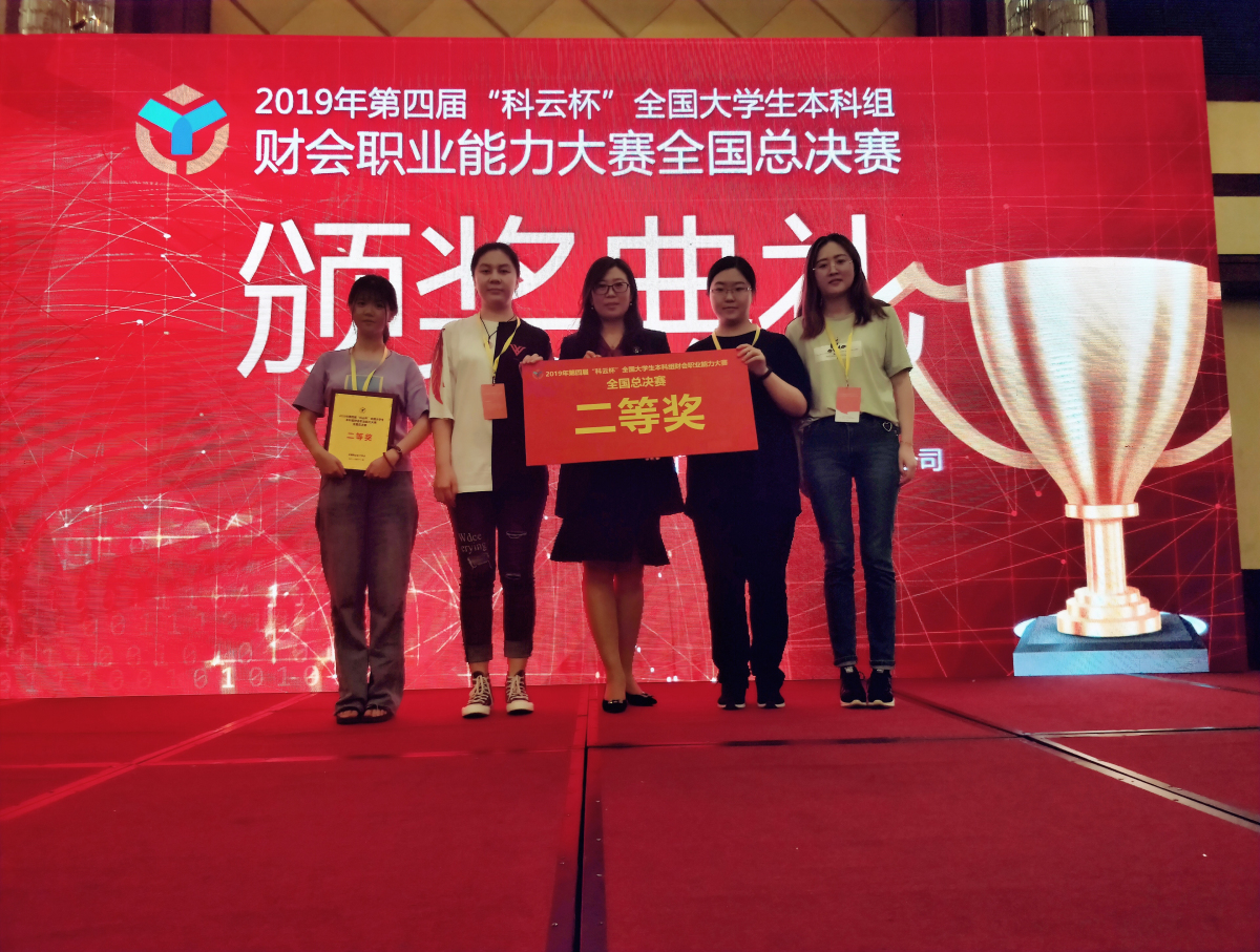2019年11月22日至11月25日,由买球体育买球体育官方网站学生组成的代表队参加了在厦门举行的第4届“科云杯”全国大学生本科组财会职业能力大赛全国总决赛。买球体育买球体育官方网站会计系洪峰、林芳两位老师指导的以马梦姗、杨金玉、唐莹和刘琦为队员的代表队,以北京赛区一等奖的成绩进入全国总决赛,并在全国总决赛的40支参赛队伍中获得二等奖。