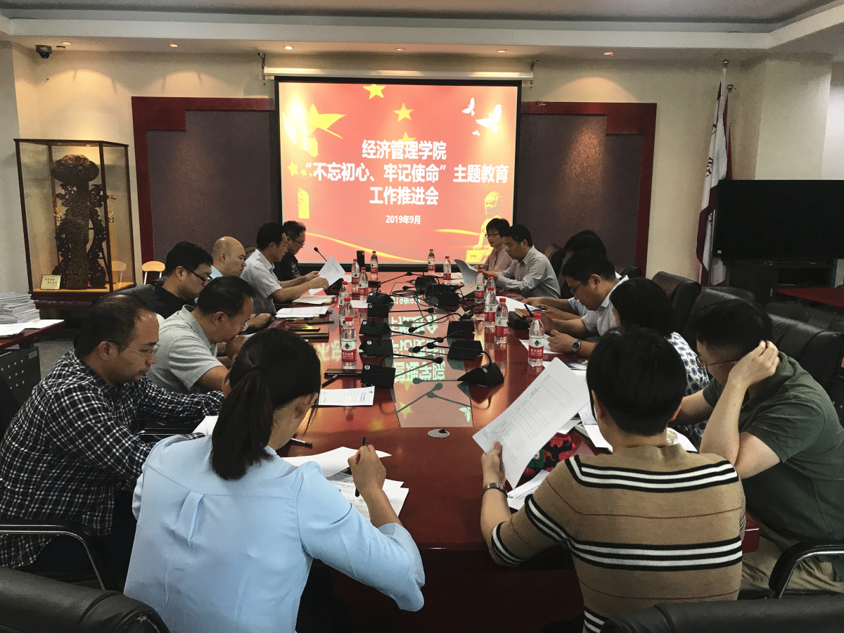 为深入贯彻习近平总书记重要指示批示精神和《中共中央关于在全党开展“不忘初心、牢记使命”主题教育的意见》要求,9月19日下午,买球体育官方网站在励学楼201会议室集中开展“不忘初心,牢记使命”主题教育工作推进会。会议由学院党委书记王伟宾主持,学院党委委员及各党支部书记参加了此次会议。