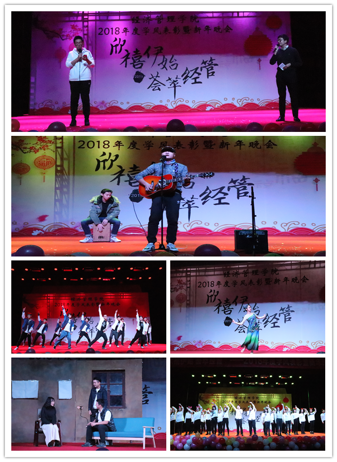 此次晚会围绕着同学们2018年的三个关键词——“坚持、转换、梦想”展开,大家通过自编自导自演的节目,回顾了2018年的过往,同时也对2019年充满了期许和展望。学院辅导员邓鑫、王昕宇以及励学楼管理员李海涛的献唱,更是将整场晚会推向了高潮,展现出了学院师生同乐贺新年的温馨画面。歌曲、舞蹈、小品等节目,也充分展现了经管人勤奋创新、阳光向上、敬业乐群、善于表达的气质品质。