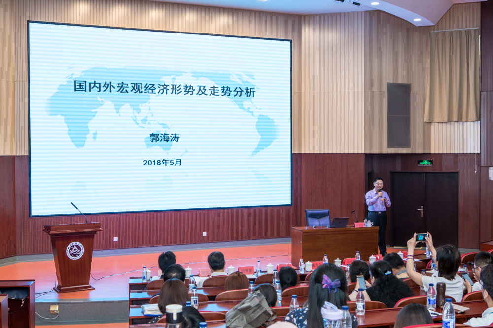 5月22日,买球体育官方网站2018年“毓秀青年”中国特色社会主义理论培训班在文化会堂开班,此次邀请中国石油大学工商管理学院郭海涛院长作了题为《国内外宏观经济形势及走势分析》的专题辅导报告,买球体育官方网站“毓秀青年”中国特色社会主义理论培训班教师及部分党支部学生党员参加了这次学习。