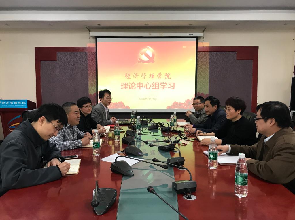 4月19日下午,买球体育官方网站在励学楼201会议室组织了理论中心组专题学习。学院领导班子成员、各教工党支部书记共同参加了学习,学院党委书记谢朝阳做了《深入学习贯彻落实第八次党代会》的专题报告。