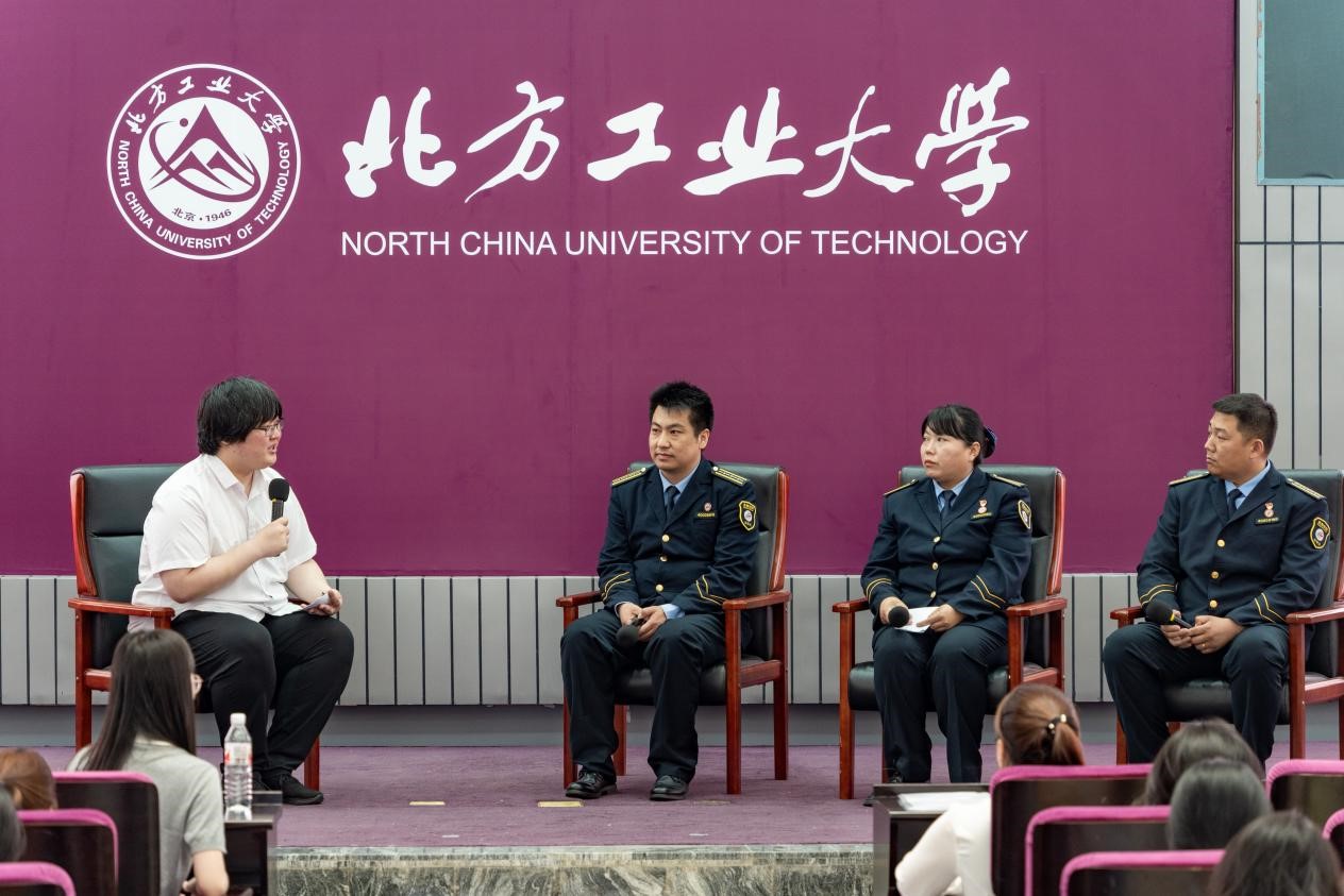 在“我与榜样面对面”环节,同学们围绕“如何在本职工作中追求卓越”“青年职业发展路径”“对青年的寄语”等话题与三位青年榜样、劳模先进展开深入访谈。