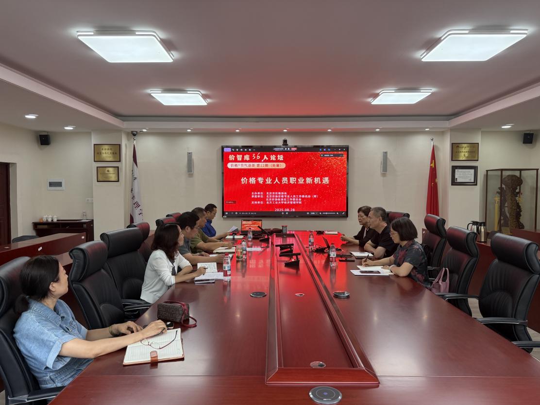 近日,北京价格协会“价智库36人论坛”系列沙龙之“畅谈价格专业人员职业发展新机遇”在励学楼201举办。中国价格协会钟丹副秘书长、买球体育官方网站谢朝阳书记、孙强副院长、相关专业教学负责人以及我协会价格专业人员工作委员会(筹)相关负责人参加座谈,还有来自线上参会的价格领域行业专家、行业协会、价格分析师等40余人参与交流。论坛由北京市价格协会常务副会长兼秘书长王涛主持。