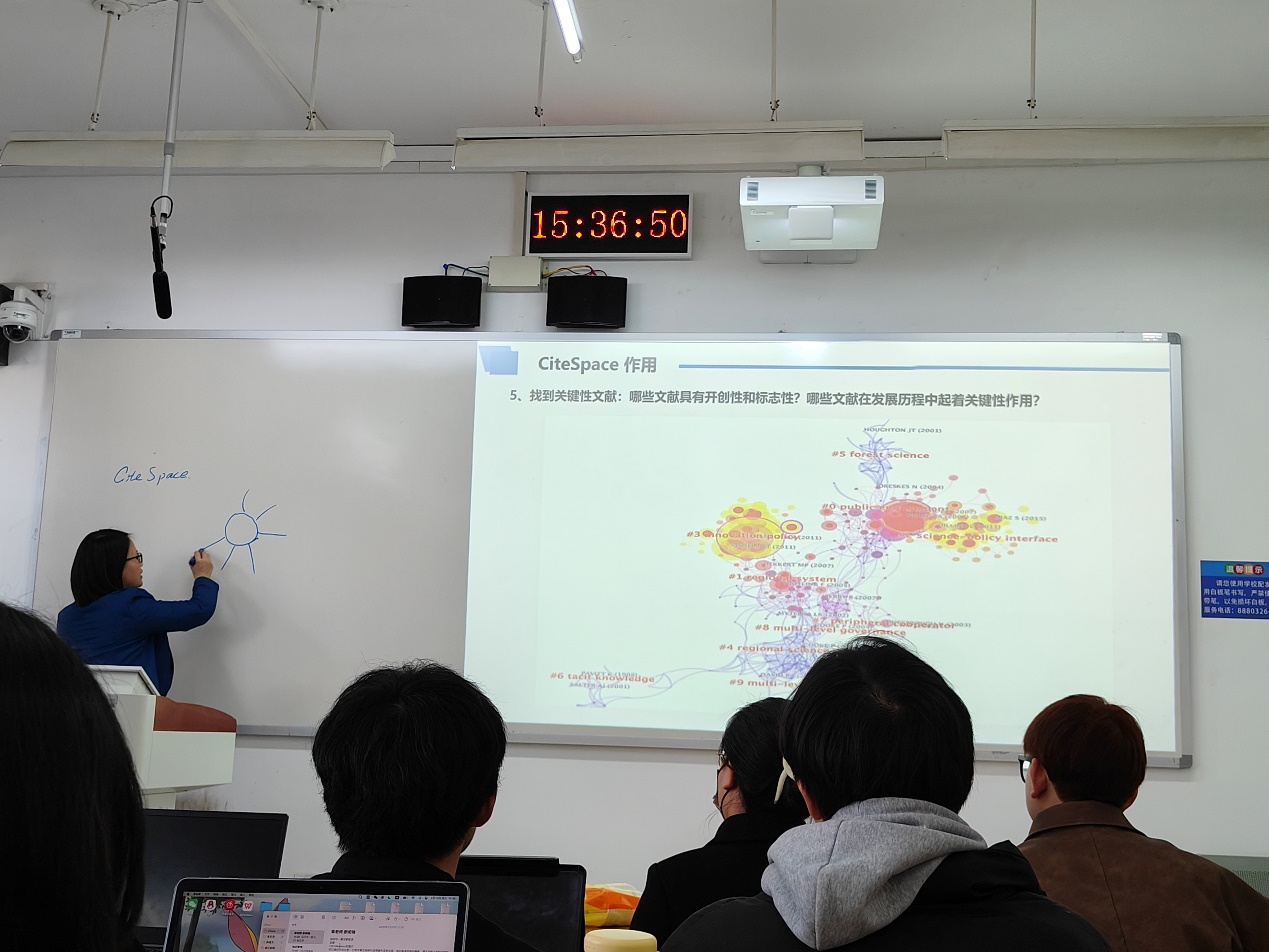 通过本次讲座,同学们不仅理解了如何做一篇好的文献综述,也意识到借助工具提升文献综述效率的重要性,并掌握了应用CiteSpace软件辅助完成文献梳理的方法和步骤,为同学们未来的学术研究起到了重要的指引作用。