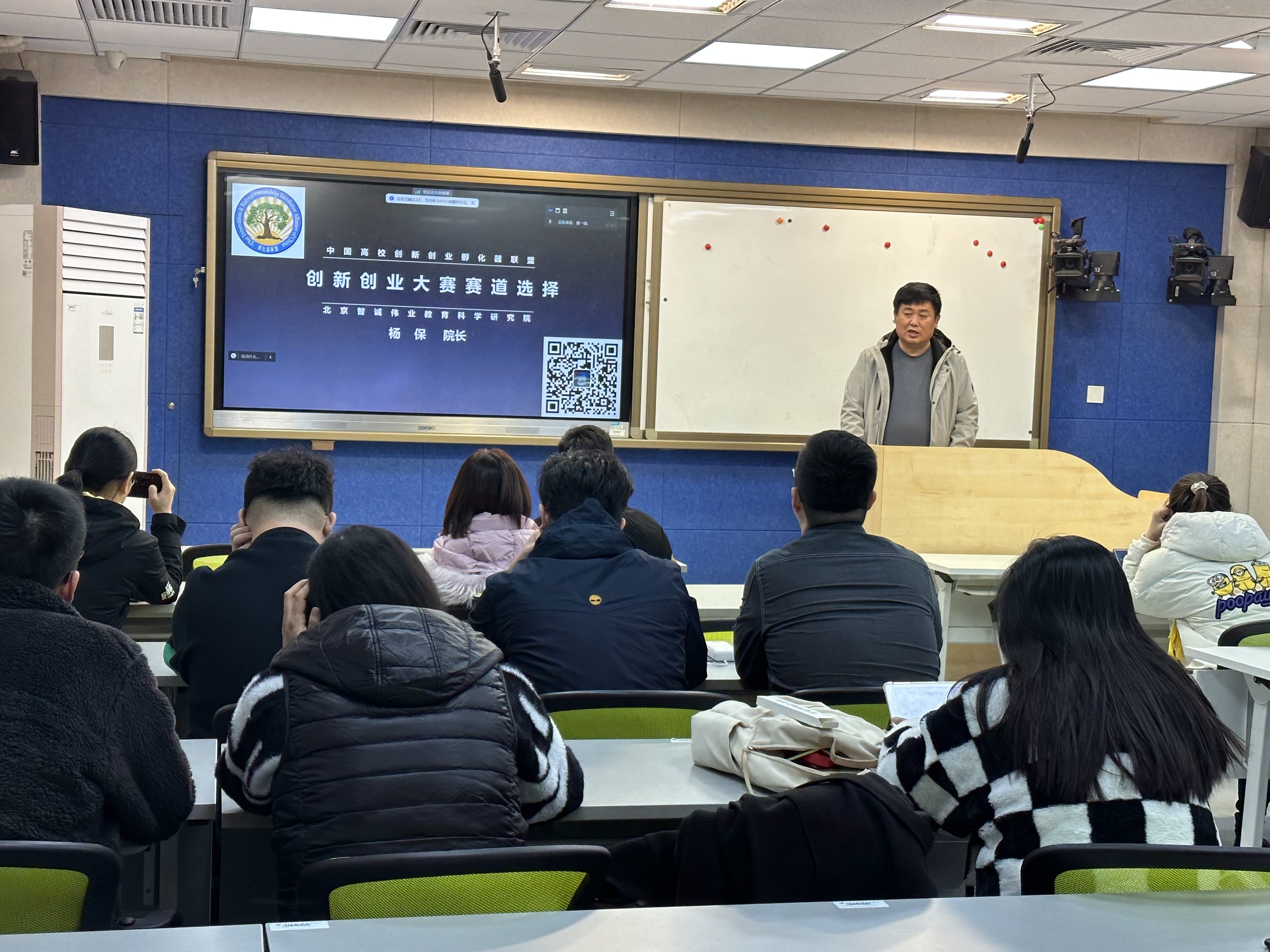 11月6日下午,买球体育官方网站在励学楼135教室举办了“创新创业导航”系列讲座第七讲。中播集团董事长、天使投资人、教育部高校创业指导师专家组副组长、中国高校创新创业孵化器联盟副理事长、团中央青年创业全国评审委员会执行委员、“互联网+”“挑战杯”“中国创翼”创新创业大赛国赛专家评委杨保先生以“创新创业大赛赛道选择”为题与买球体育师生开展了交流。讲座由买球体育官方网站创新创业基地刘冰副教授主持。