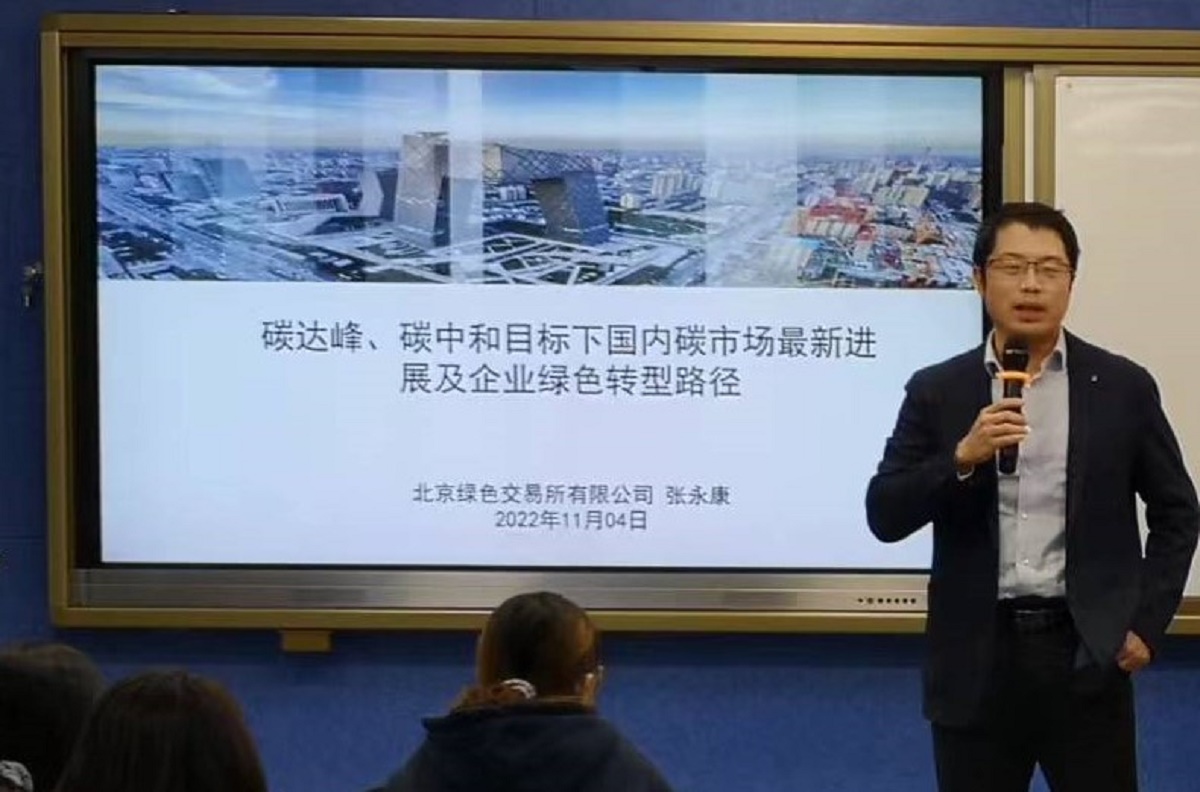 11月4日下午,买球体育官方网站在励学楼135举行第4期“励学讲堂”活动。北京绿色交易所绿色发展中心主任张永康受邀为会计系师生做了题为“碳达峰、碳中和目标下国内碳市场最新进展及企业绿色转型路径”的学术报告。讲座由会计系主任王志亮教授主持。