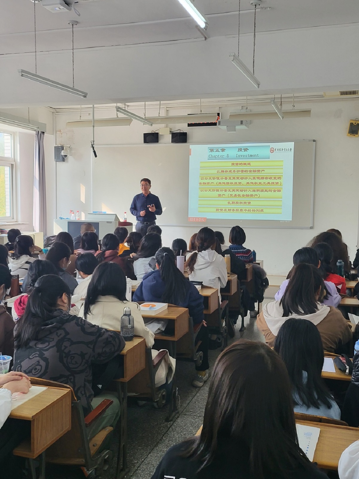 课堂上,李教授讲述了企业对外投资的类别,以及会计准则对各类投资的核算要求。结合自身丰富的上市公司治理经验,李教授生动形象地通过企业的投资业务实践,帮助学生理解“交易性金融资产”的会计处理及其背后的经济意义。李教授的讲解条理清晰、详略得当,理论与实际相结合,充分调动了同学们的学习积极性与主动性,引发同学们对企业投资业务的深度思考。通过本次活动,课堂教学实现了校内与校外、科研与教学的联动,开拓了同学们的专业视野,得到学生的一致好评。