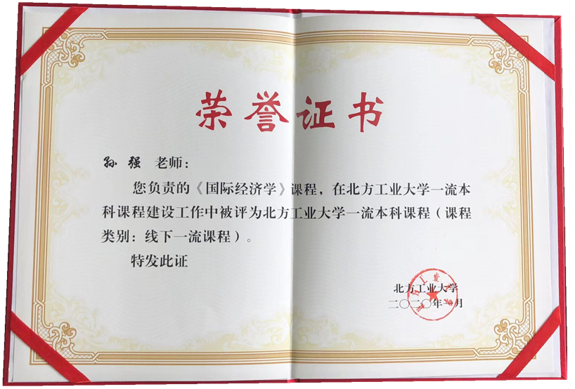 孙强老师负责的《国际经济学》课程被评为 买球体育官方网站一流本科课程 |