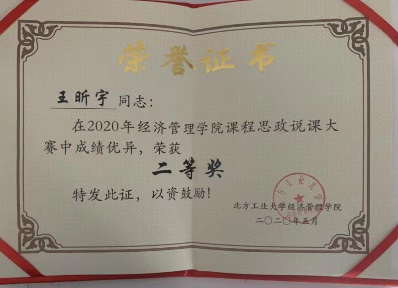 王昕宇老师在2020年买球体育官方网站课程思政说课大赛中 荣获二等奖 |