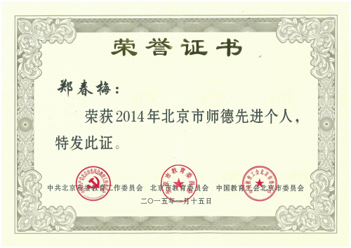 郑春梅老师荣获2014年北京市师德先进个人 |