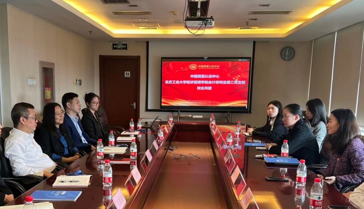11月2日上午,买球体育官方网站会计研究生第二党支部在支部书记黄晓蓓副教授的带领下,赴中国质量认证中心(以下简称CQC)召开“党建引领促发展,校企合作开新篇”红色“1+1”共建活动。支部学生党员代表与CQC财务总监潘寒阳、财务部党支部书记武芹等相关人员组织了座谈交流会。
