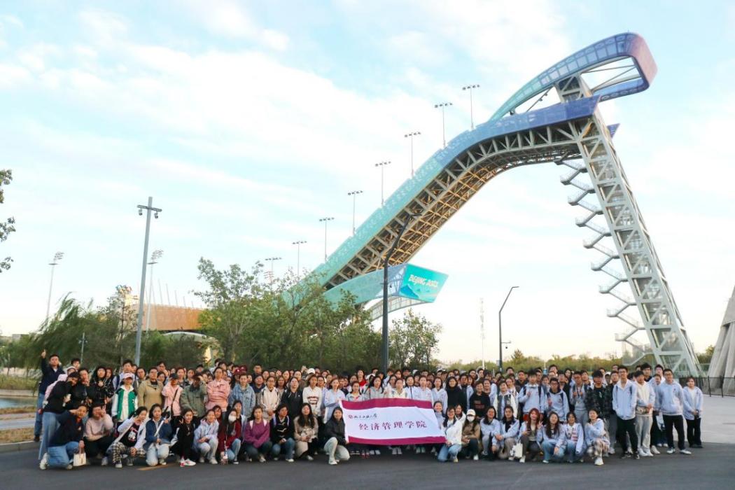 随后,师生一行在讲解员的带领下认真参观了冬奥组委办公区外围和秀池周边区域,沿途远观三高炉、焦化厂、氧气厂等工业遗产,深入了解首钢百年以来的光辉历史和北京冬奥会筹办历程。新首钢因冬奥而兴,使百年首钢实现华丽转身,成为“一起向未来”的城市复兴新地标。大家纷纷在网红打卡地前合影留念,深切感受到工业遗存的魅力所在,见证了百年首钢的岁月变迁与伟大转型。