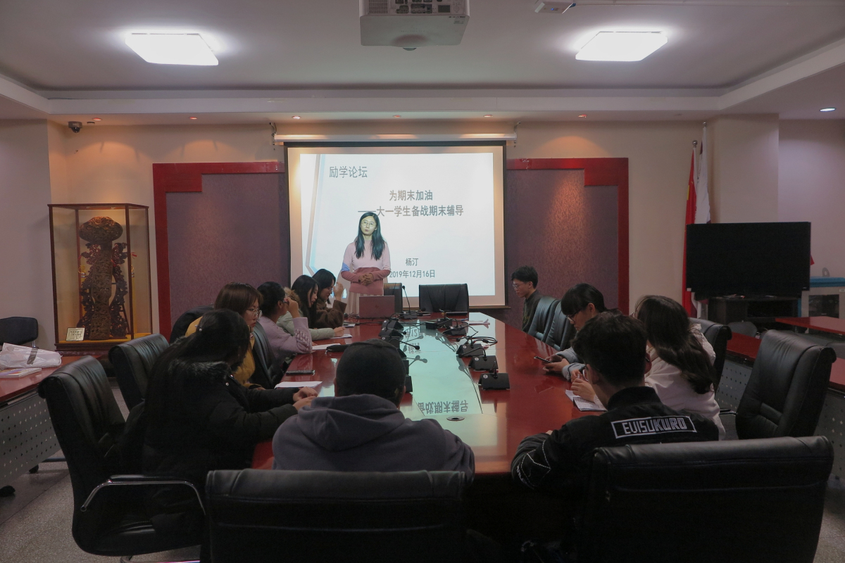 12月16日晚,买球体育官方网站励学论坛在励学楼201举行。本期论坛主题为“为期末加油——大一学生期末复习方法分享”。论坛由教师辅导员杨汀主持,买球体育官方网站大一各专业同学参加了此次论坛。