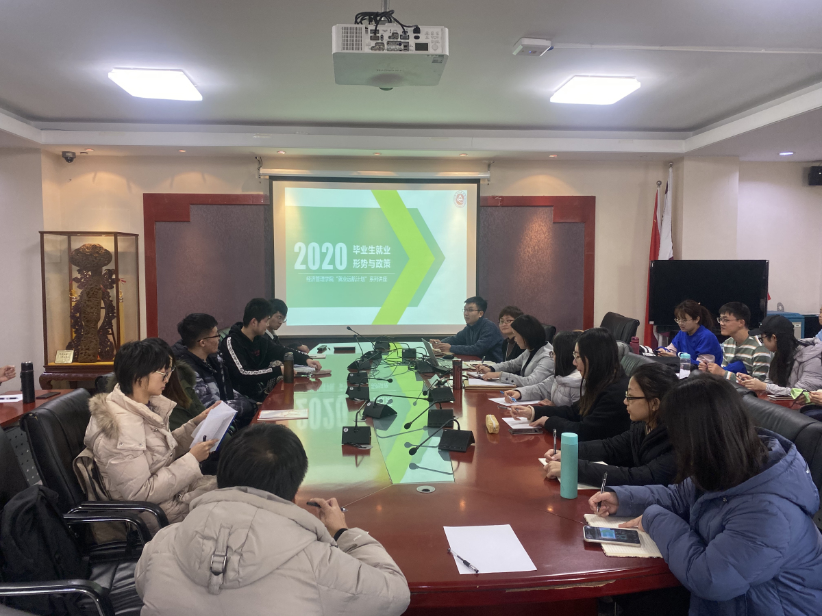 12月4日下午,买球体育官方网站在励学楼201会议室组织召开研究生就业动员会,学院党委副书记赵洁、副院长陶晓波,研究生辅导员陈旭霞以及全体研究生毕业生参加了此次会议。