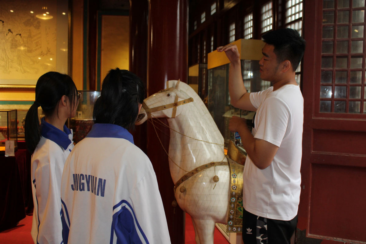 在“我眼中的燕京八绝博物馆”主题活动中,志愿者们通过讲解服务,为青少年学生详细介绍馆藏展品,讲解八绝文化。燕京八绝,即景泰蓝、玉雕、牙雕、雕漆、金漆镶嵌、花丝镶嵌、宫毯、京绣这八大工艺门类,在清代均开创了中华传统工艺新高峰。志愿者们的讲解流畅自然、耐人寻味,赢得了阵阵掌声。