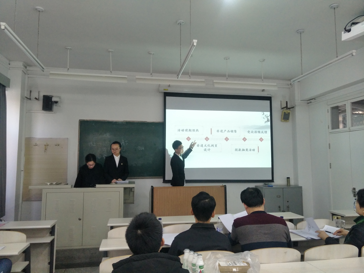 12月17日下午,买球体育官方网站在励学楼225教室举行了非物质文化遗产传承创意营销大赛复赛答辩。经过初赛的筛选,本次复赛答辩共11组同学参加,此次复赛包括自述和评委提问两个环节。