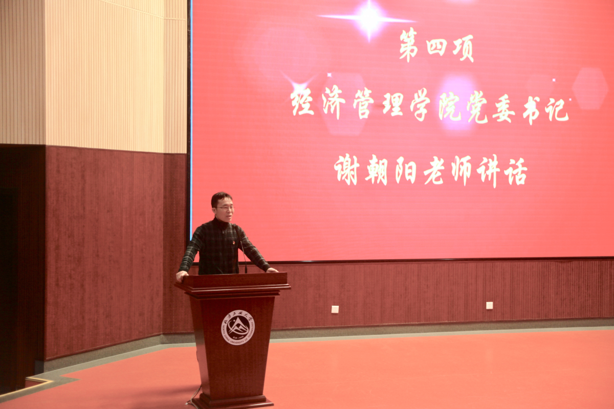 大会在庄严的国歌声中正式拉开帷幕。谢书记代表学院党委,发表了讲话,他对学代会的召开表示祝贺,对各位学生代表为学院的发展积极建言献策表示感谢。同时,谢老师也对大家提出三点希望。一是希望大家要加强理论学习,坚定理想信念,把握人生中最美好的时光,尽快成长为祖国的合格建设者和可靠接班人。二是希望大家要在实践中锻炼、在实践中提高,努力成长为“勤奋创新、阳光向上、敬业乐群、善于表达”的经管人。三是希望大家要增强服务意识、提高服务能力,做好老师和同学们之间的沟通纽带,在服务中体会别样的获得感和幸福感。