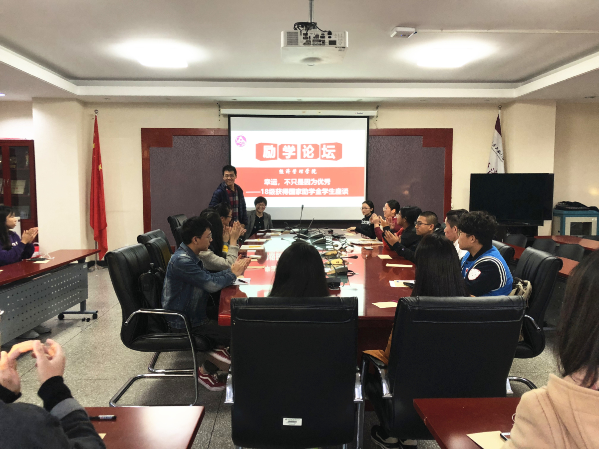 10月31日下午4:40,买球体育官方网站励学论坛之“幸运,不只是因为优秀”如期举行。学院党委副书记赵洁、辅导员王学成以及2018级获国家助学金同学参加了座谈会。