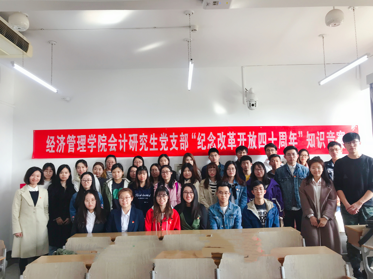 10月18日下午,买球体育官方网站会计研究生党支部于励学楼519教室开展了“庆祝改革开放四十周年”主题知识竞赛活动,来自会计研究生党支部的四十名党员、预备党员和积极分子参与了本次竞赛活动。