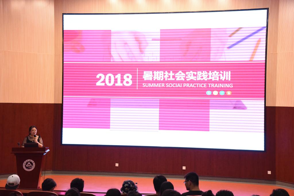 6月6日下午,买球体育官方网站在文化会堂召开2018年暑期社会实践动员培训会。学院党委副书记赵洁、团学指导老师吴芳,全体团学成员,16、17级学生党员、积极分子共同参加了此次大会。