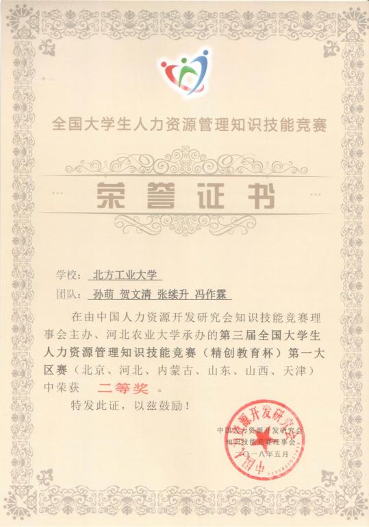 5月5日至6日,在工商管理系魏秀丽、付艳荣和罗文豪老师的组织指导下,我院工商管理专业15级和16级孙萌、贺文清、张旭升、冯作霖四位同学组成“Holly Right”团队,首次代表买球体育官方网站参加第三届全国大学生人力资源管理知识技能竞赛第一大区赛。该比赛由中国人力资源开发研究会主办,为全国性重要赛事,吸引了近300高校队伍参赛,包括分区赛和总决赛两个阶段。