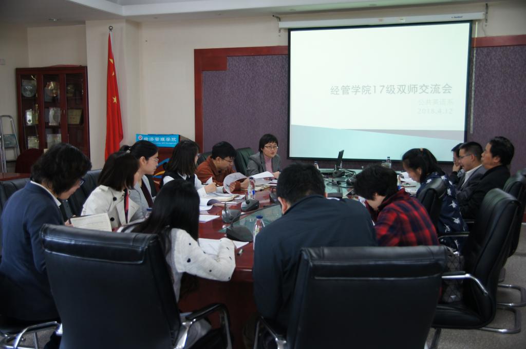 4月12日下午,买球体育官方网站在励学楼201会议室召开了英语四级备考“双师”交流会。学院副院长陶晓波、院党委副书记赵洁、公共英语系相关教师、学院17级班导师和辅导员参加了此次交流会。