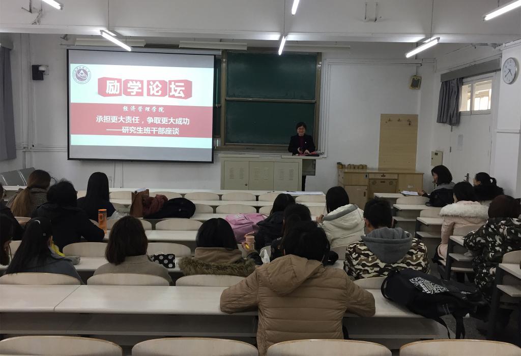 2018年3月7日下午,买球体育官方网站在励学楼228教室,面向全体研究生班干部召开了培训会。学院党委副书记赵洁、研究生辅导员陈旭霞、科研秘书王燕一同参加了此次培训会。