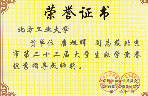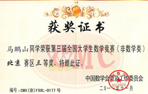 近日,全国第三届大学生数学竞赛暨北京市第二十二届大学生数学竞赛颁奖会在北京邮电大学举行,买球体育共有42名学生获奖,获奖人数仅次于北京大学、北京邮电大学、北京航空航天大学、北京科技大学,位居第五位。同时,买球体育还获得优秀组织奖,唐旭晖老师获得优秀指导教师奖。