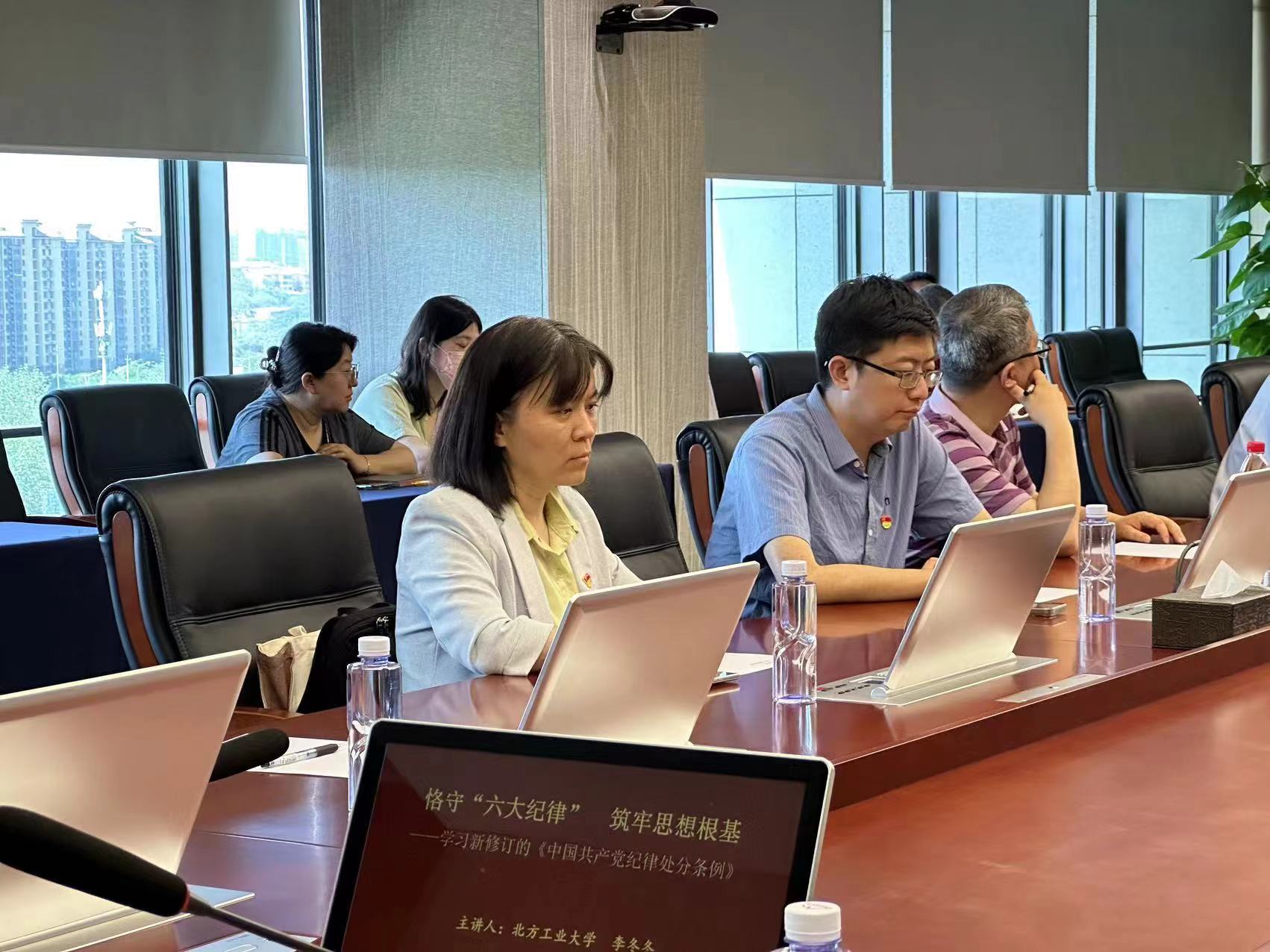 会上邀请马克思学院李冬冬老师结合关于党的纪律建设系列重要讲话重要指示精神,以党的“六大纪律”为重点,系统讲解新修订的《中国共产党纪律处分条例》(以下简称《条例》),倡导党员同志牢固树立党章党规党纪意识,自觉在廉洁自律上追求高标准,在严守党纪上远离红线,做到守纪律、讲规矩,知敬畏、存戒惧,充分发挥党员先锋模范作用。