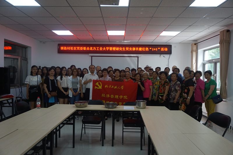 为积极开展“两学一做”学习教育,加强基层党组织建设,进一步提高党支部的创造力、凝聚力、战斗力。管理研究生党支部于2018年6月12日赴铸造村社区与铸造村社区党委共建红色“1+1”活动,活动主题为“共建红色1+1绿丝带爱老助残端午节”。参加本次活动的有铸造村社区党委书记吴晓娟、买球体育官方网站副书记赵洁、管理研究生党支部书记涂剑波以及党支部的12名党员。
